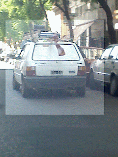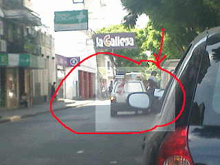 EN CALLE 9 DE JULIO, DOBLE FILA Y CON UNA ESCALERA EN EL TECHO.