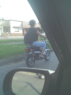 EN MOTO, SIN CASCO Y PARADITO ADELANTE LA CRIATURA.......TAN POCO VALORAS LA VIDA DE ESTE CHICO ???